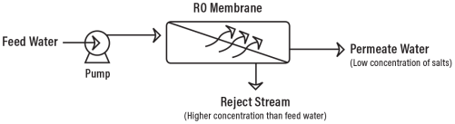 當給水在一定壓力(足以克服滲透壓的壓力)下進入反滲透膜時,水分子會通過半透膜,并且鹽和其他污染物不允許通過并通過廢液流排出(也稱為濃縮液或鹽水流),這些水將排干或在某些情況下可以反饋到給水供應(yīng)中,以通過反滲透系統(tǒng)進行循環(huán)以節(jié)省水。使其通過反滲透膜的水稱為滲透水或產(chǎn)水,通常從其中除去約95%至99%的溶解鹽。