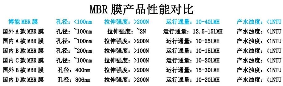 雖然長久以來進口膜品牌知名度高,但我們在質(zhì)量方面已經(jīng)與之相差無幾了,以博能MBR膜為例,從實際應用來看,其在孔徑、拉伸強度、運行通量和產(chǎn)水濁度等性能參數(shù)已經(jīng)可以對標國外B款MBR膜,且價格更低。